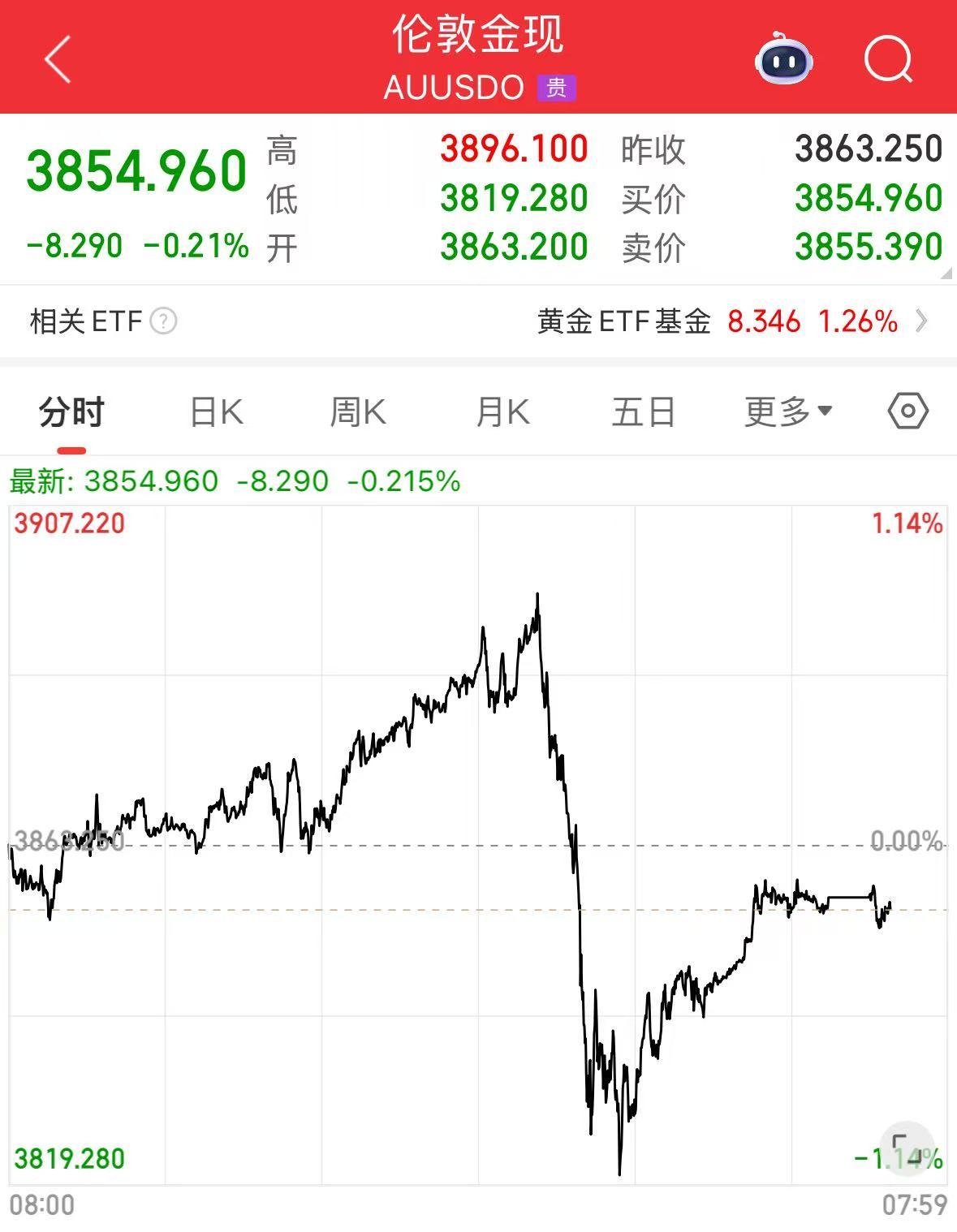 现货黄金、白银短线跳水,黄金一度失守3850美元/盎司。截至发稿前,黄金下跌0.21%,白银下跌0.67%。