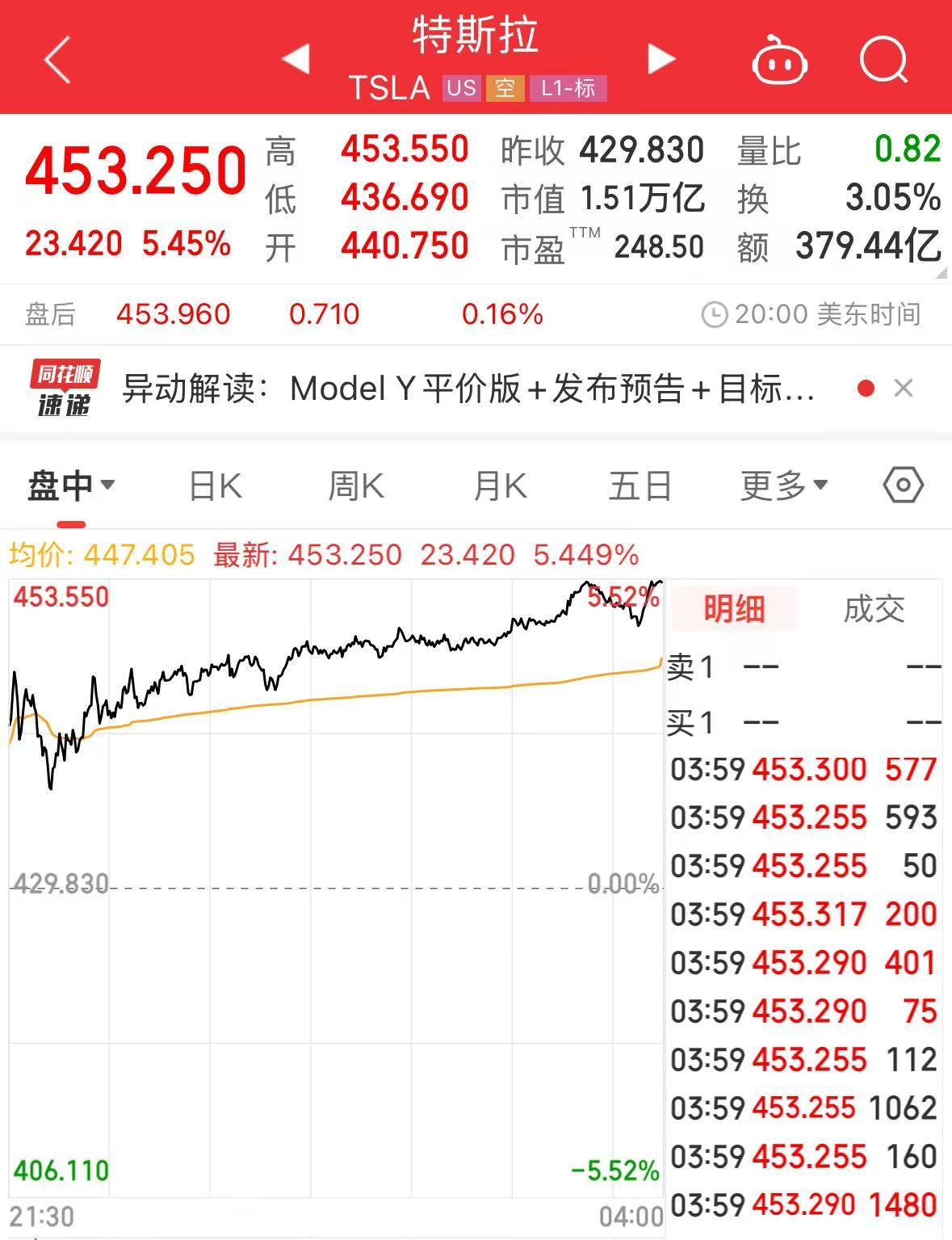 盘面上,截至美股最新收盘,特斯拉涨超5%。