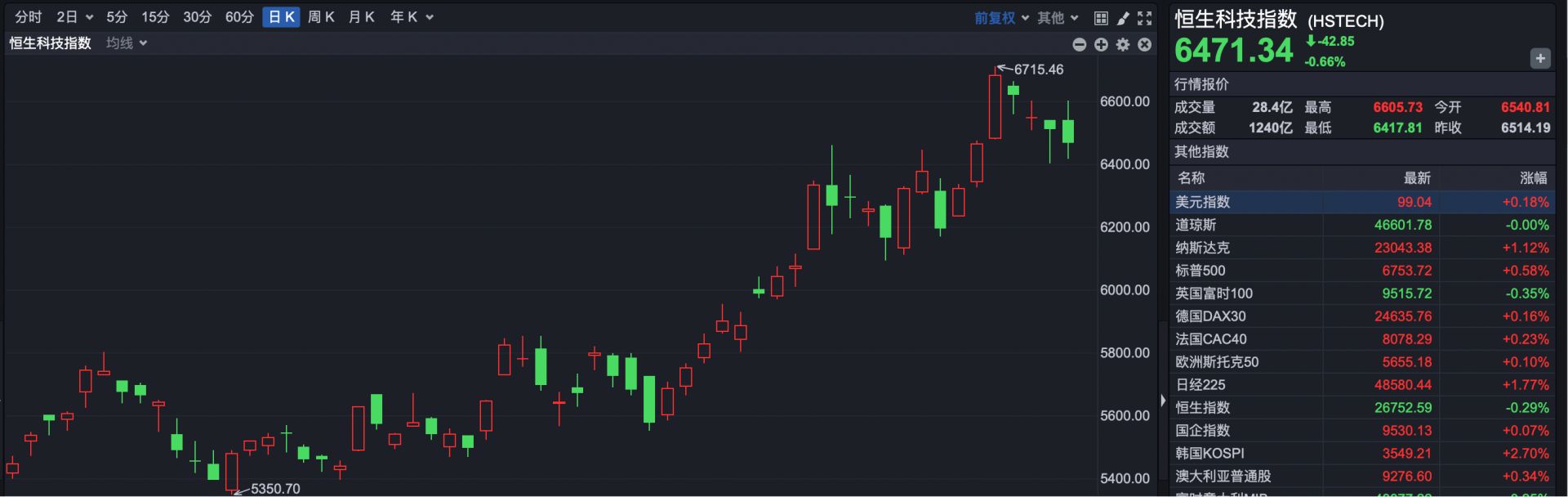 恒生科技指数报收于6471.34点,下跌42.85点,跌幅0.66%。
