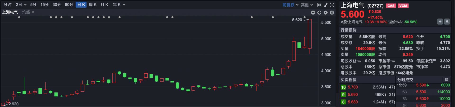 热点方面,核电板块持续走强。其中,上海电气(02727.HK)大涨超17%,中广核新能源(01811.HK)涨超7%,东方电气(01072.HK)涨超5%,中广核电力(01816.HK)涨超4%,中核国际(02302.HK)跟涨。