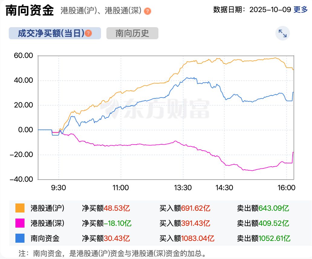 资金方面,今日南向资金表现谨慎。截至收盘,南向资金净买入港股约30亿港元。