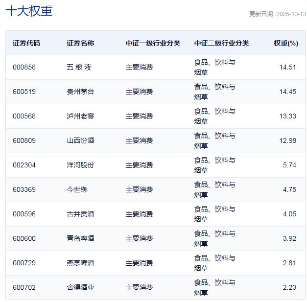 中证酒指数主要权重股