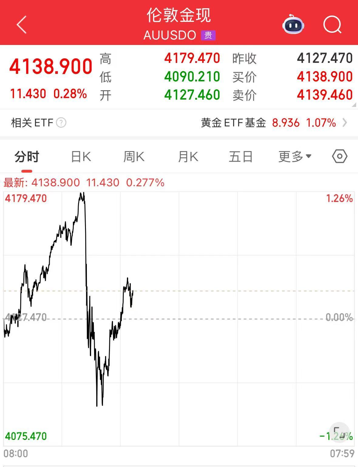 10月14日,现货黄金先涨后跌,截至发稿报4138.9美元/盎司。