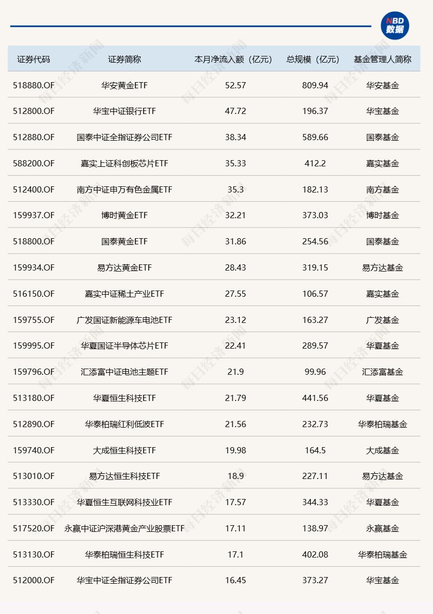 截至10月16日,本月资金净流入额居前20的ETF名单如下: