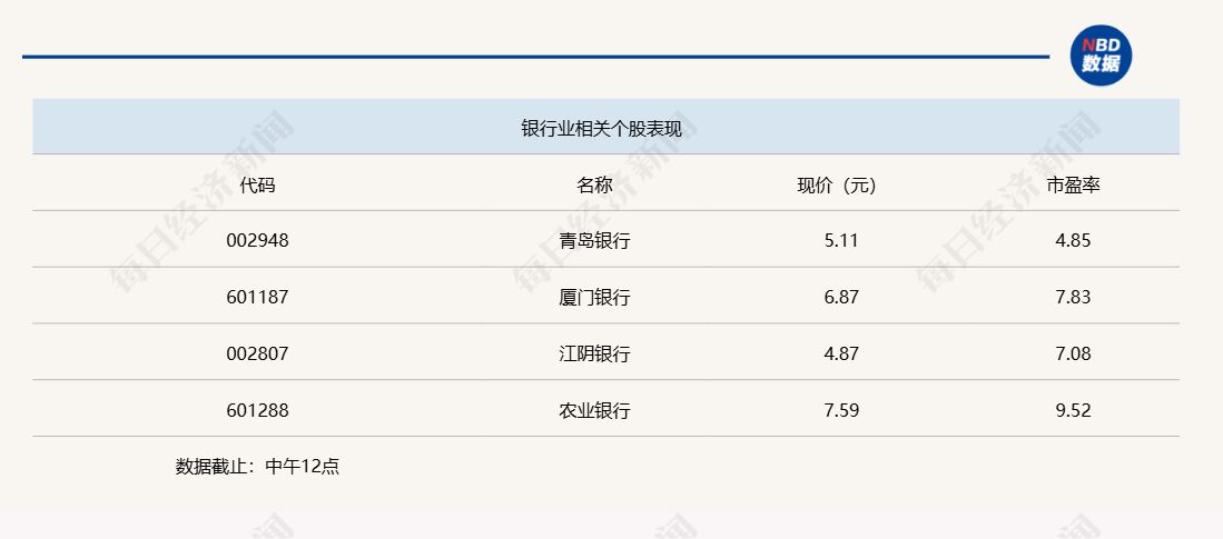 板块方面,银行股稳健攀升,农业银行盘中一度涨幅超2%再创历史新高,总市值突破2.6万亿元,青岛银行、厦门银行涨逾2%。黄金股冲高回落后,萃华珠宝涨近7%,山东黄金、西部黄金涨幅居前。