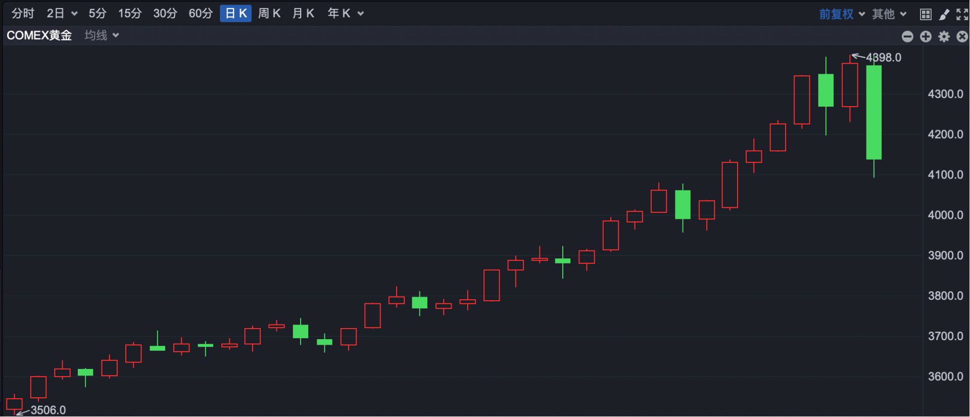 消息面,国际金银大跌,现货黄金跌5.18%,报4130.41美元/盎司,盘中一度创自2013年4月以来的最大单日跌幅。现货白银跌7.16%,报48.705美元/盎司,盘中一度创下自2021年以来的最大跌幅。COMEX黄金期货当月连续合约结算价下跌250.30美元,跌幅5.74%,报4109.1美元/盎司。