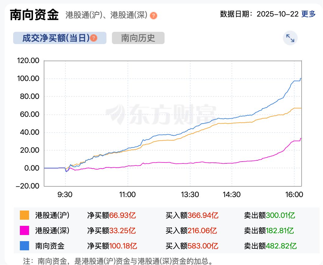 资金方面,南向资金重新回流。截至收盘,南向资金净买入港股金额超100亿港元。