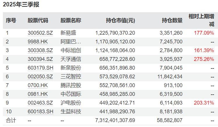 记者注意到,该基金不仅在三季度规模变化明显,单季度累计申购超过60亿份,而且从持仓来看,三季度前十大重仓股更换了6只,胜宏科技、快手-W、小鹏汽车-W等退出前十大,三花智控、腾讯控股、中芯国际等新进前十大。