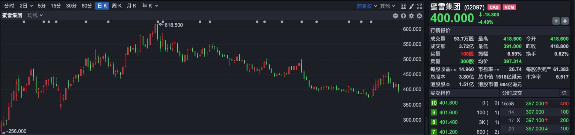 此外,蜜雪集团(02097.HK)跌超4%,古茗(01364.HK)跌近7%。市场主要担忧,新茶饮板块各类品牌迟迟无法走出价格战的内卷局面。