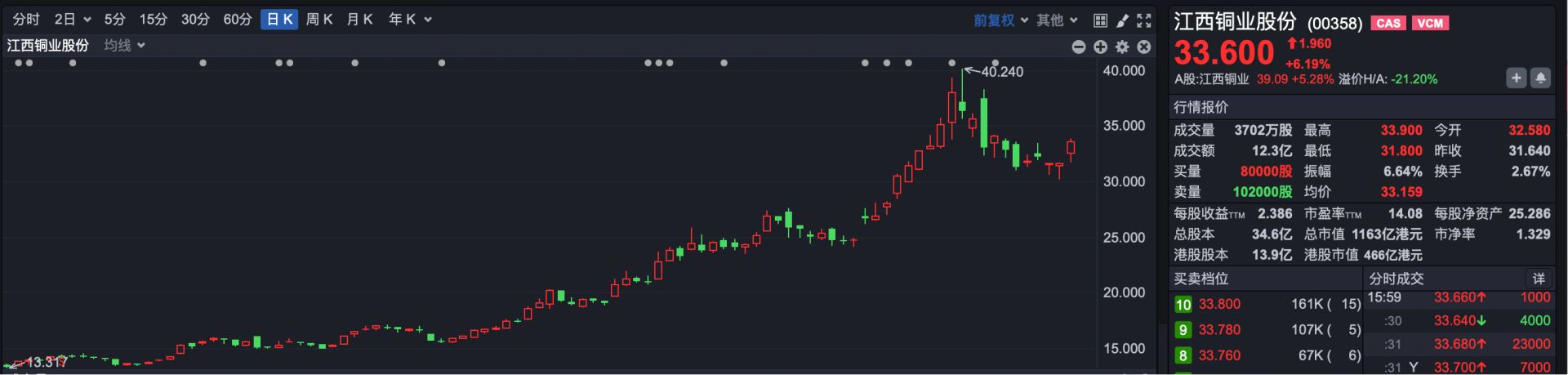 有色金属板块活跃,江西铜业股份(00358.HK)、洛阳钼业(03993.HK)、五矿资源(01208.HK)涨超6%,中国有色矿业(01258.HK)涨超4%。花旗看好未来6至12个月的铜价,短期而言,铜价若下跌将吸引投资者趁低吸纳,因此维持未来3个月铜价目标价为每吨11000美元。