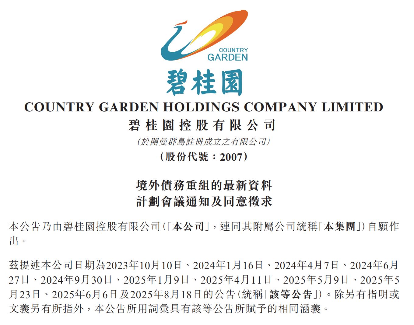 此外,碧桂园于10月13日公告称,公司将于2025年11月5日召开两类计划债权人的会议,以审议及批准其拟议的债务安排计划。为统一处理债务,公司还将同步进行现有港元可转换债券的同意征求,旨在将其管辖法律变更为香港法律并纳入上述整体重组计划。