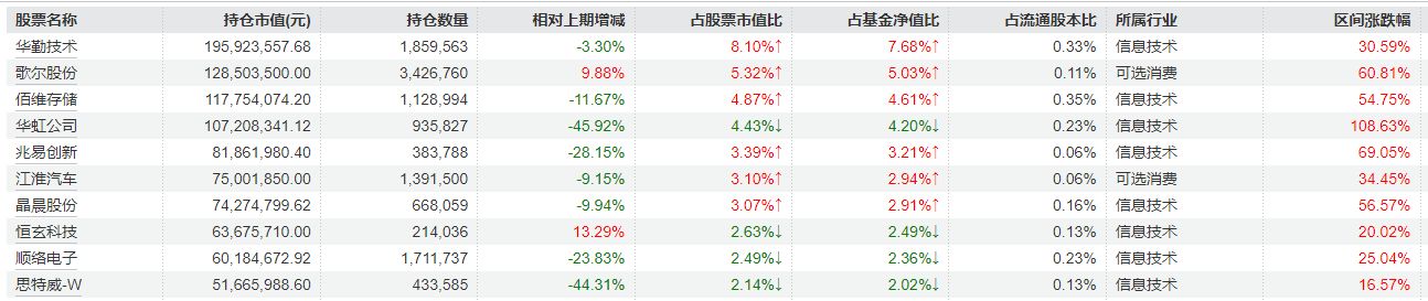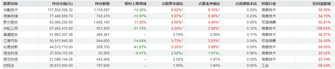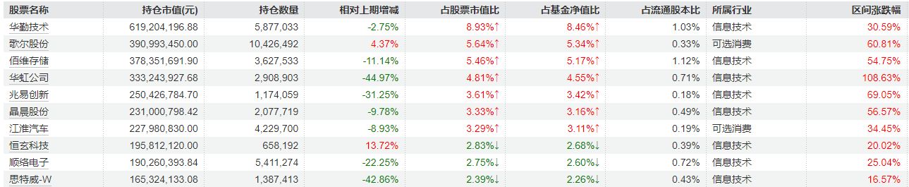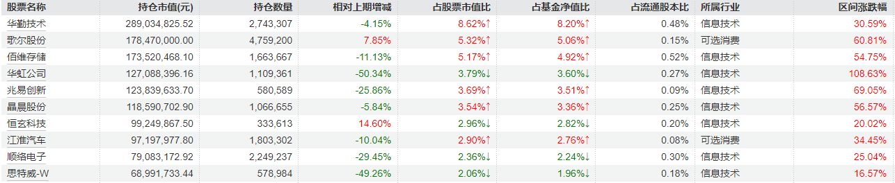 从三季报持仓来看,重仓股的持仓数量变化明显,华虹公司、兆易创新、思特威-W等在三季度内均出现环比减持。