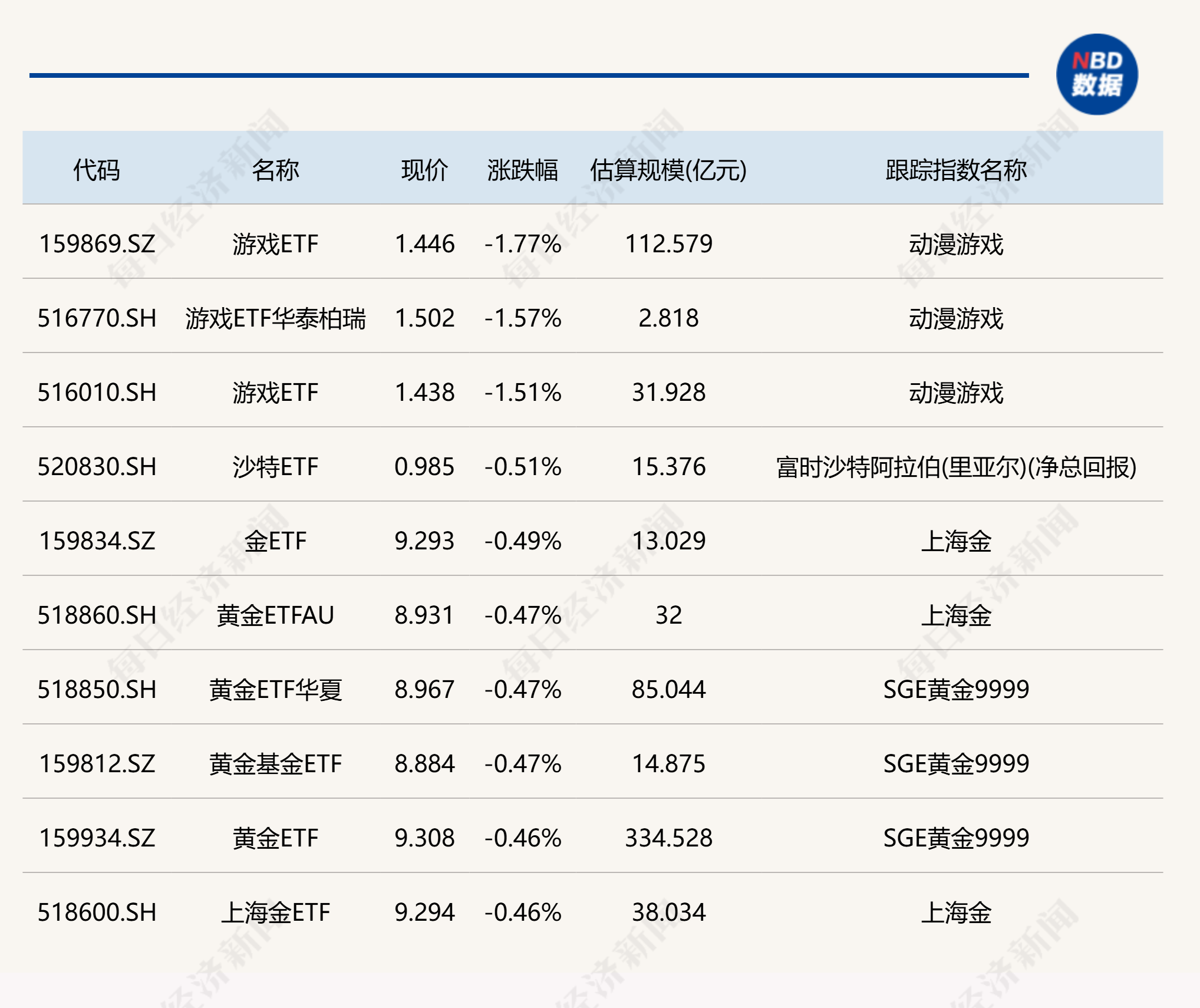 ETF今日收评 | 5G通信ETF、5GETF涨超5%,游戏ETF跌幅居前