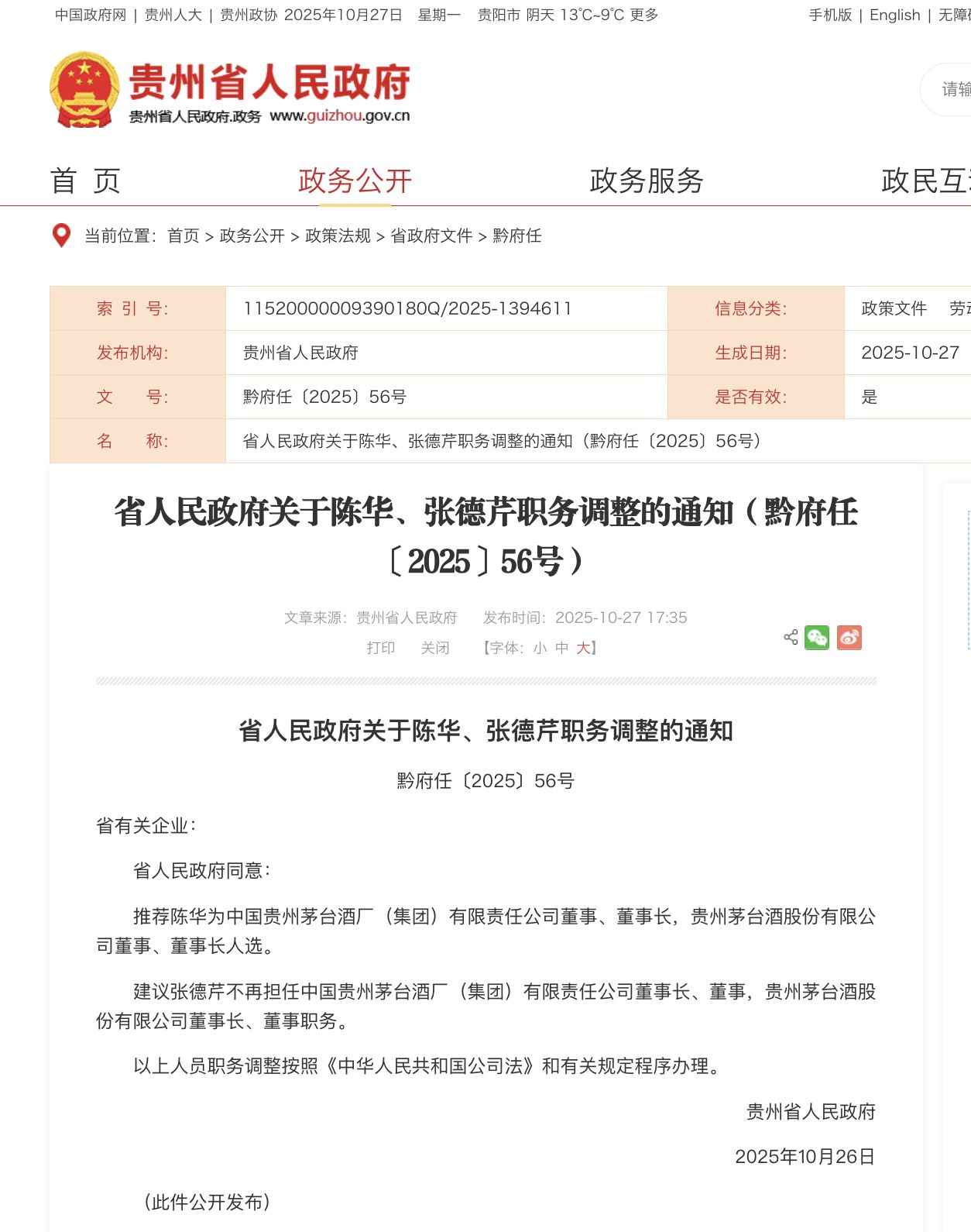 最新!贵州茅台董事长张德芹辞职