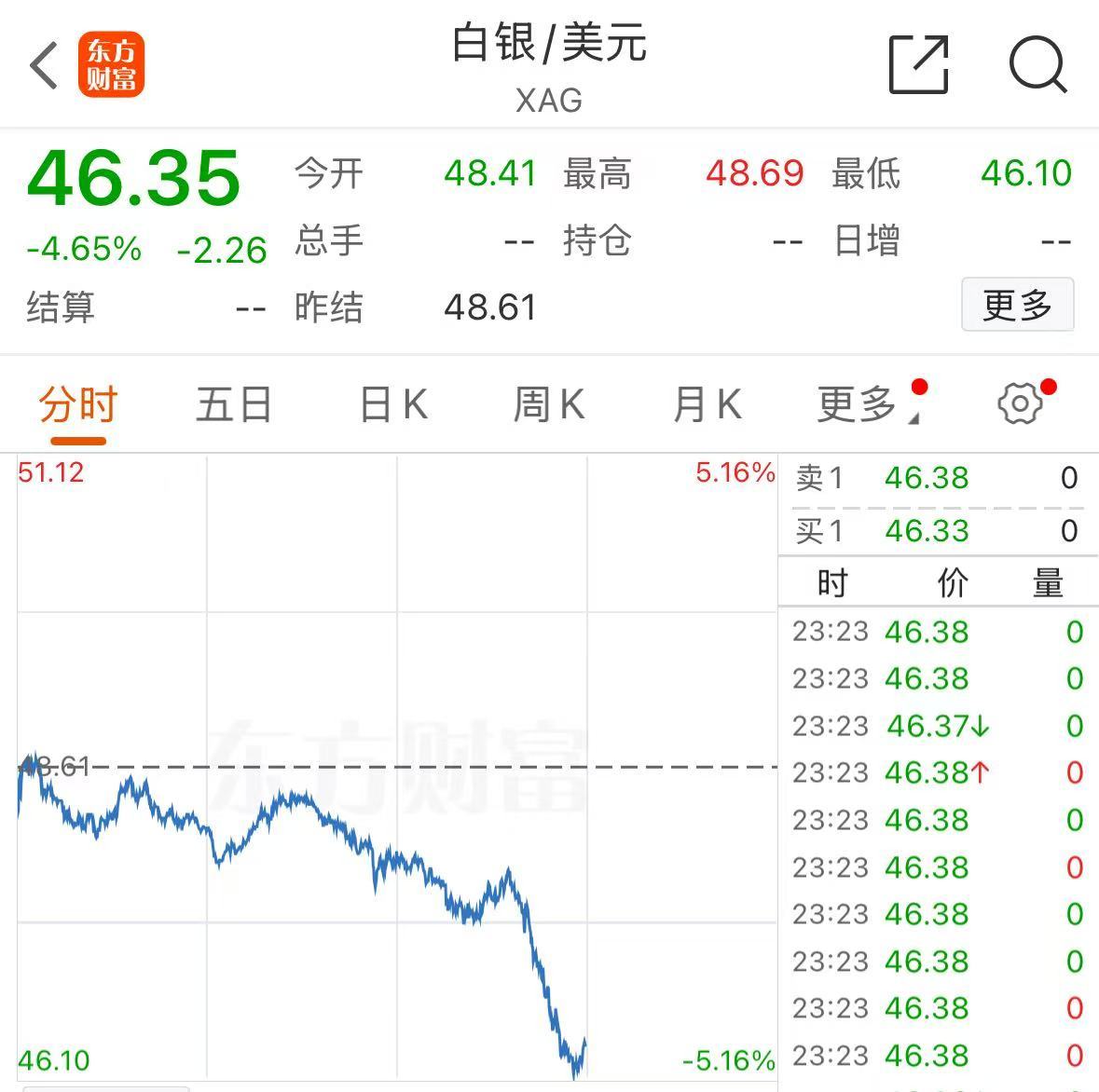 作为避险资产的黄金、白银价格则大幅跳水,现货黄金向下跌破4000美元/盎司,为10月10日以来首次,截至北京时间23:20左右,现货黄金大跌3.19%,报3981.01美元/盎司,现货白银大跌4.65%,报46.35美元/盎司。