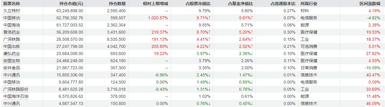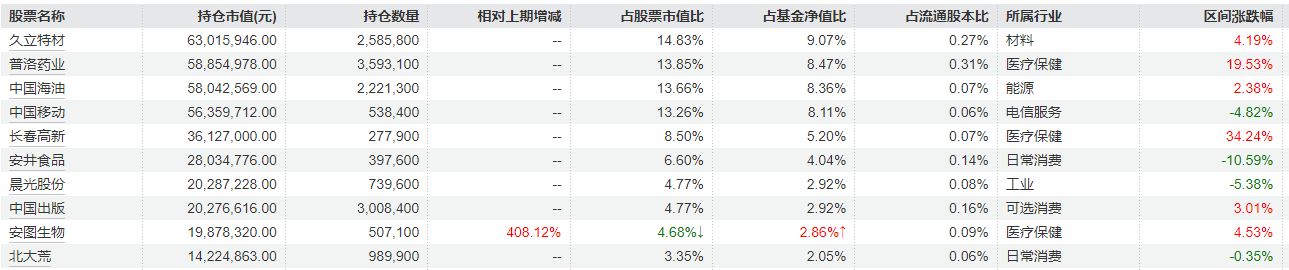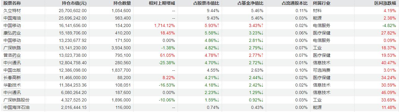 就重仓股来看,久立特材、普洛药业、中国海油、中国移动、长春高新等出现在名单中。上述个股也是他此前多个季度、多只在管基金喜欢重仓的标的。