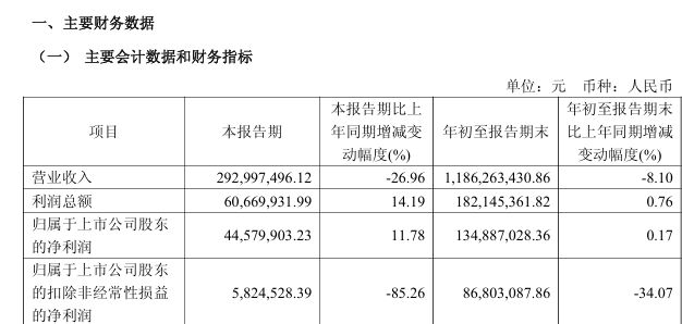 会稽山三季度主要财务数据(图片来源:公司三季报截图)