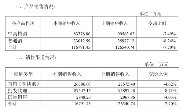 根据古越龙山2025年1-9月经营数据,该公司中高档酒收入同比下滑7.49%至8.38亿元,很显然在产品提价后,其销量未达预期,高端化战略短期内未能见效。