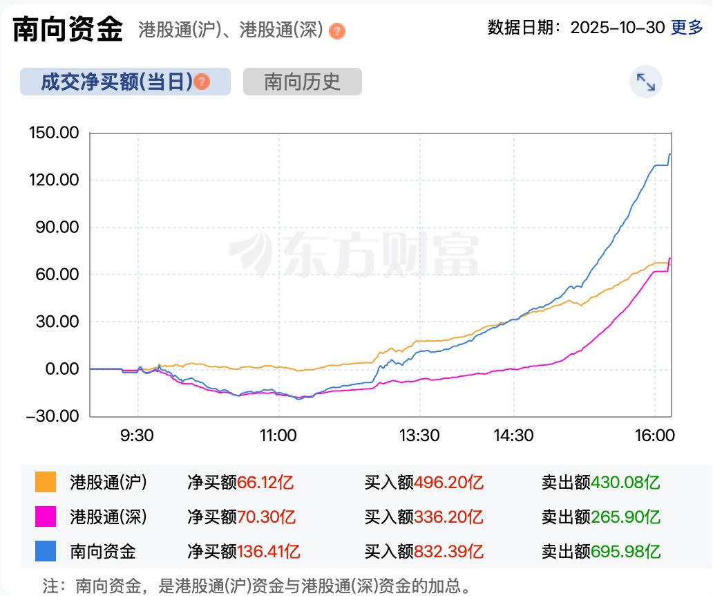 资金方面,截至收盘,南向资金净买入港股金额超130亿港元。