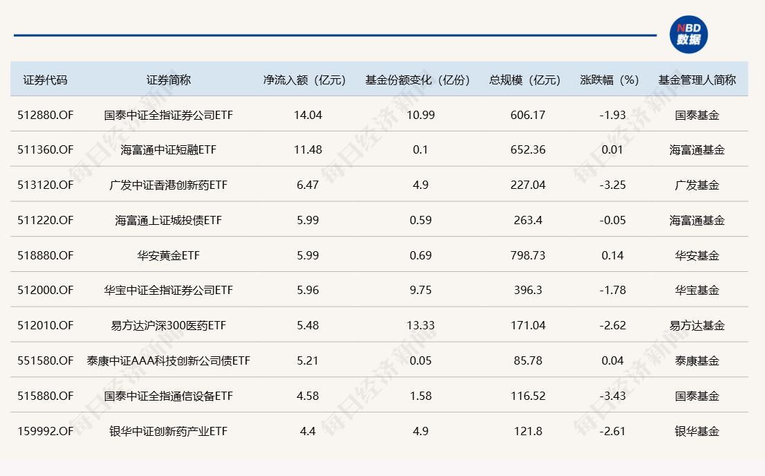 ETF规模速报 | 证券ETF昨日净流入超14亿元
