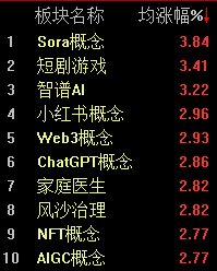 板块方面,AI应用端走强,影视传媒、游戏、Sora概念等AI应用端携手反弹,荣信文化20%涨停,三六零、税友股份等多股涨停。锂电概念延续强势,天际股份2连板,海科新源、奥克股份、华盛锂电跟涨。