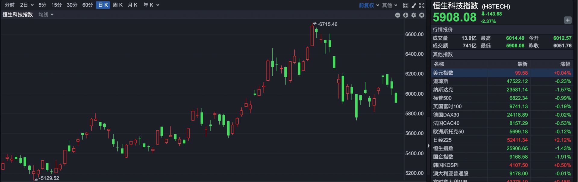 港股速报 | 港股弱势调整 恒生科技指数跌超2% 创新药板块逆势走强