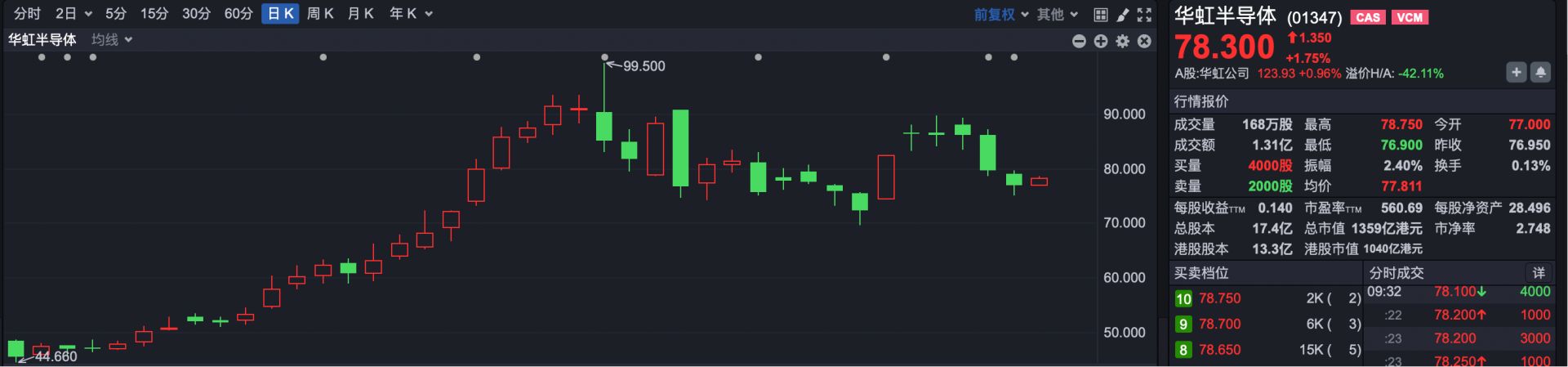 热点板块方面,半导体板块迎来反弹,其中,中芯国际(00981.HK)、华虹半导体(01347.HK)、上海复旦(01385.HK)涨超1%,英诺赛科(02577.HK)上涨0.7%。