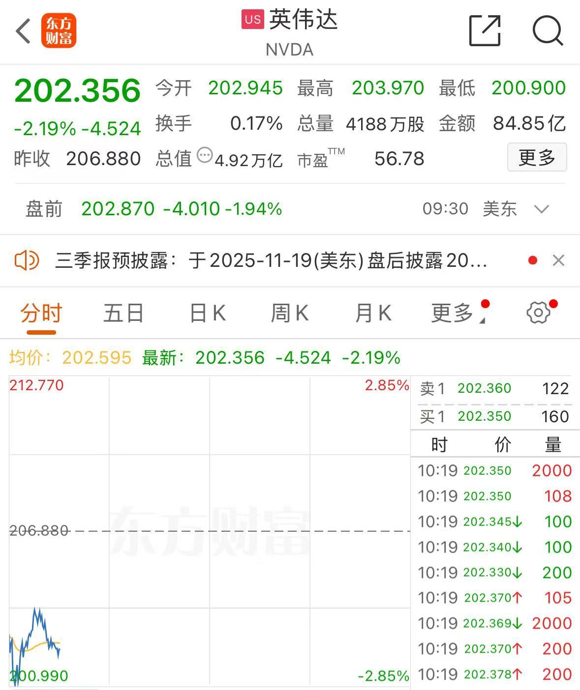 北京时间11月4日晚间,美股三大指数集体低开,截至发稿,道指跌0.17%,标普500指数跌0.57%,纳指大跌0.94%。