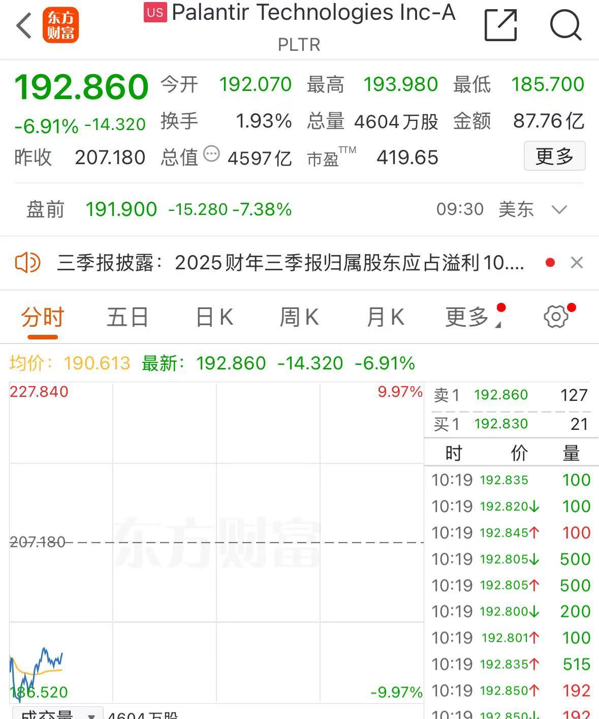 据媒体报道,有分析指出,市场抛售的导火索是AI概念股Palantir股价大跌,尽管该公司公布了创纪录营收并上调全年业绩预期,但投资者选择获利了结。这一表现加剧了市场对科技股估值过高的担忧,反映出投资者开始重新审视科技板块的估值水平。