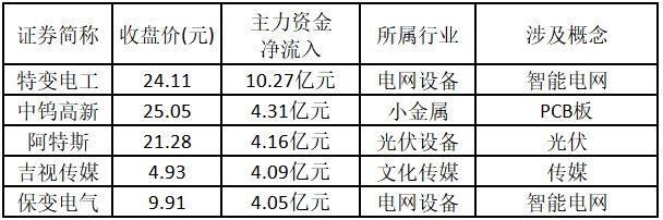 从主力资金来看,今日涨停板个股中,主力资金净流入金额排名前5的个股分别为特变电工、中钨高新、阿特斯、吉视传媒、保变电气。欢迎大家关注微信公众号“道达号”,其“道达涨停复盘”栏目为大家解读。