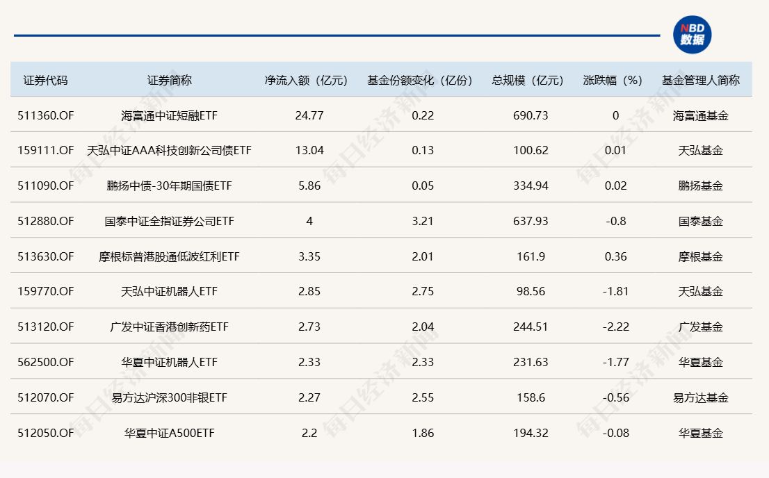 ETF规模速报 | 短融ETF上周五净流入近25亿元,沪深300ETF净流出近8亿元