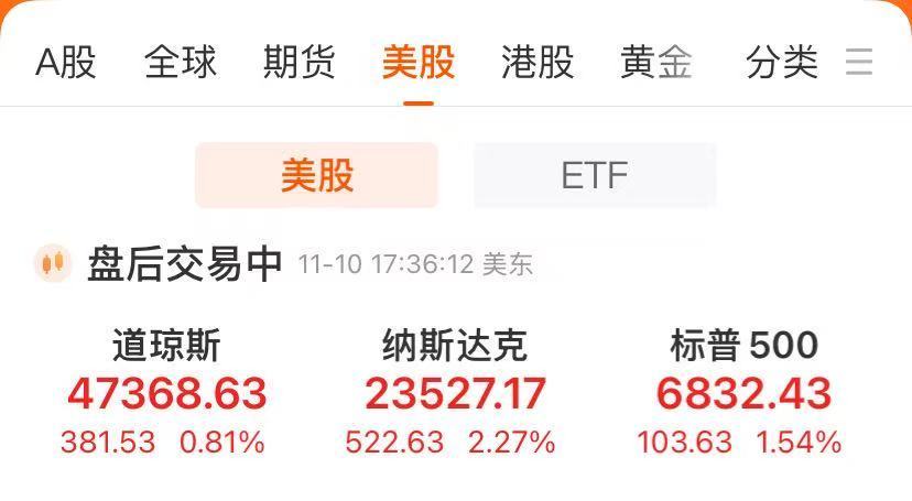美东时间周一,美股三大指数集体收涨,截至收盘,道琼斯指数涨0.81%,标普500指数涨1.54%,纳斯达克综合指数涨2.27%。