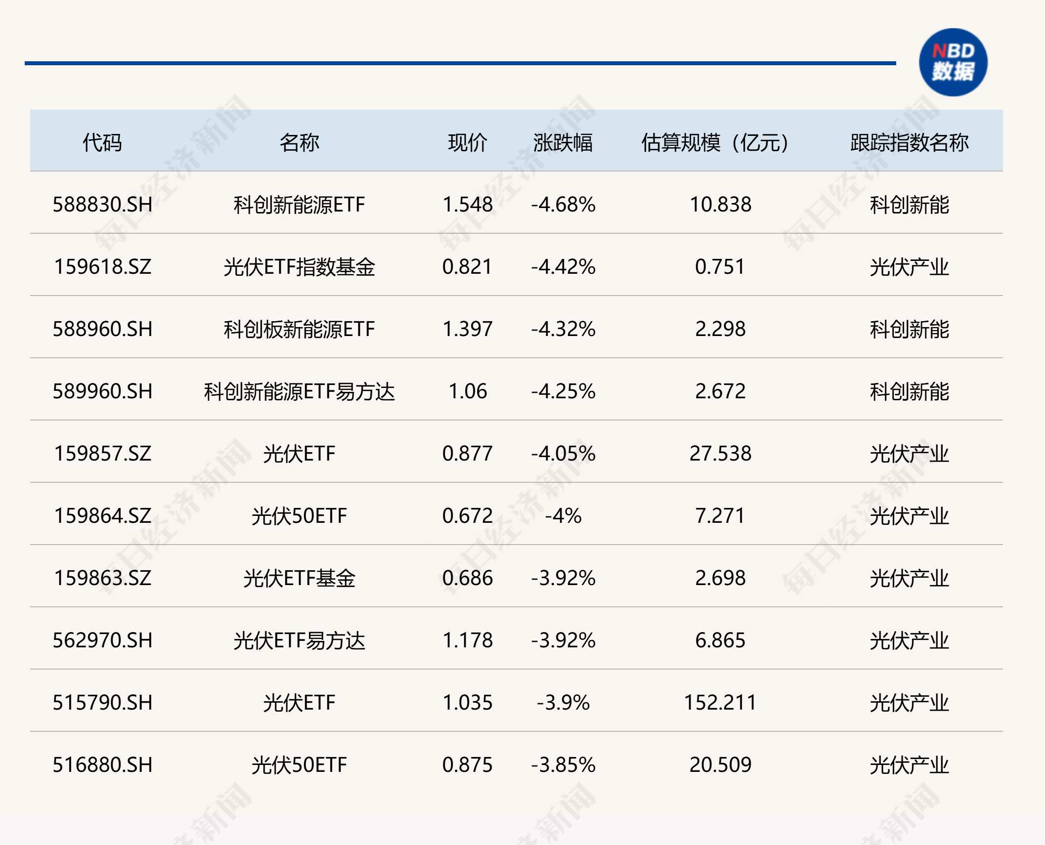 ETF今日收评 | 港股创新药相关ETF涨超3%,新能源相关ETF跌超4%