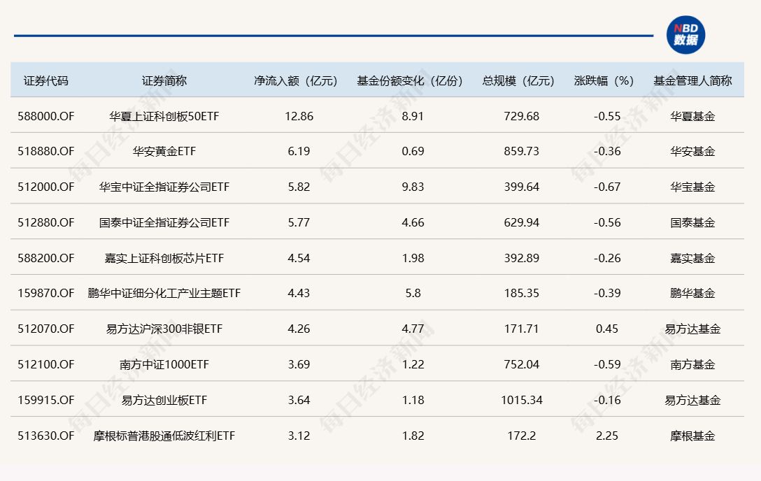 ETF规模速报 | 科创50ETF净流入近13亿元,上证50ETF净流出逾8亿元
