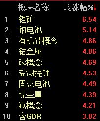 板块方面,锂电产业链全线爆发,锂电电解液方向领涨,宁德时代涨超8%,华盛锂电等多股涨停。光伏板块反弹,上能电气、联泓新科、国晟科技强势涨停。