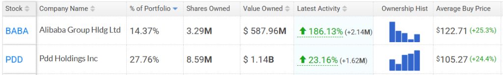 与此同时,HHLR Advisors对阿里巴巴的持股数激增186.13%,增持214万股,使阿里巴巴一跃成为基金的第二大重仓股,持仓市值5.88亿美元。