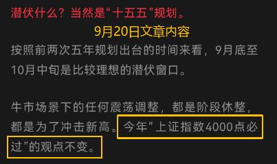 在9月20日的文章里,小二表达了“今年必上4000点”的观点。