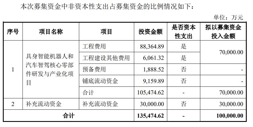 据悉,五洲新春拟向特定对象发行股票募集资金总额不超过10亿元,其中7亿元用于具身智能机器人和汽车智驾核心零部件研发与产业化项目,3亿元用于补充流动资金。