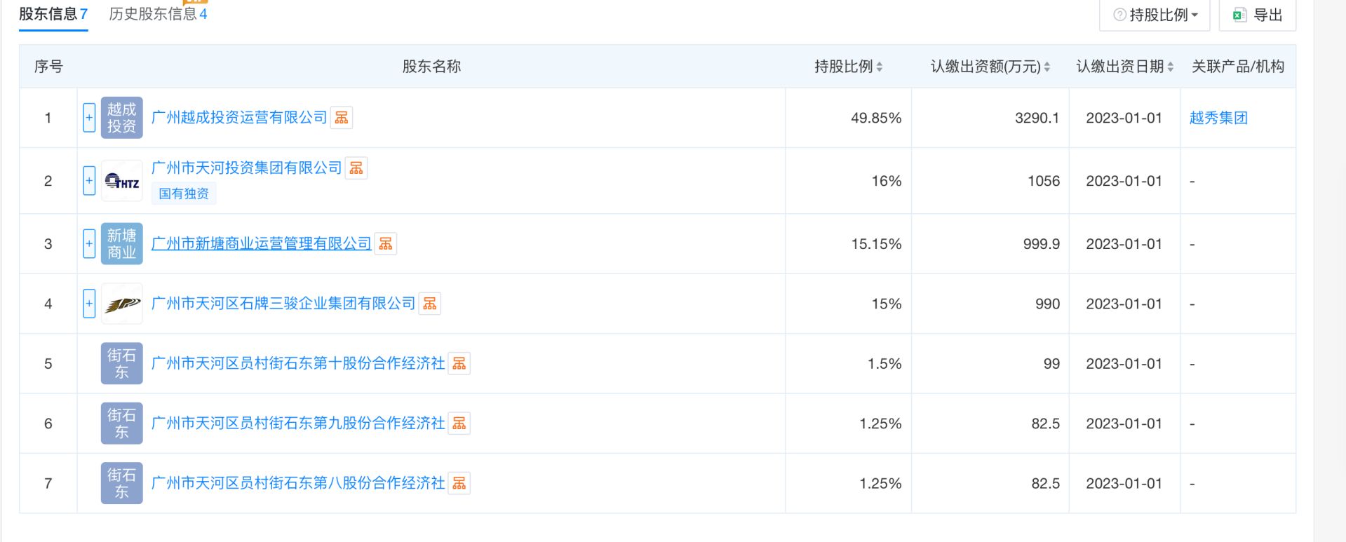 天眼查数据显示,广州赛马场运营管理有限公司7名股东以国资企业为主导:第一大股东广州越成投资运营有限公司持股49.85%,可分约33.1亿元补偿;广州市天河投资集团有限公司和广州市新塘商业运营管理有限公司合计持股31.15%,对应约20.68亿元补偿;村集体合计持股19%(其中石牌村合作经济社占15%、潭村相关经济社占4%),可获约12.62亿元补偿。
