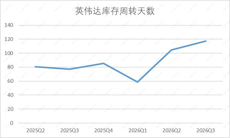 财报显示,截至第三财季末,英伟达的库存总额升至197.84亿美元。根据数据平台Discounting Cash Flows,英伟达的库存周转天数(DIO)目前已达117.5天,而在2026财年第一季度时,这一数字还在58.64天。