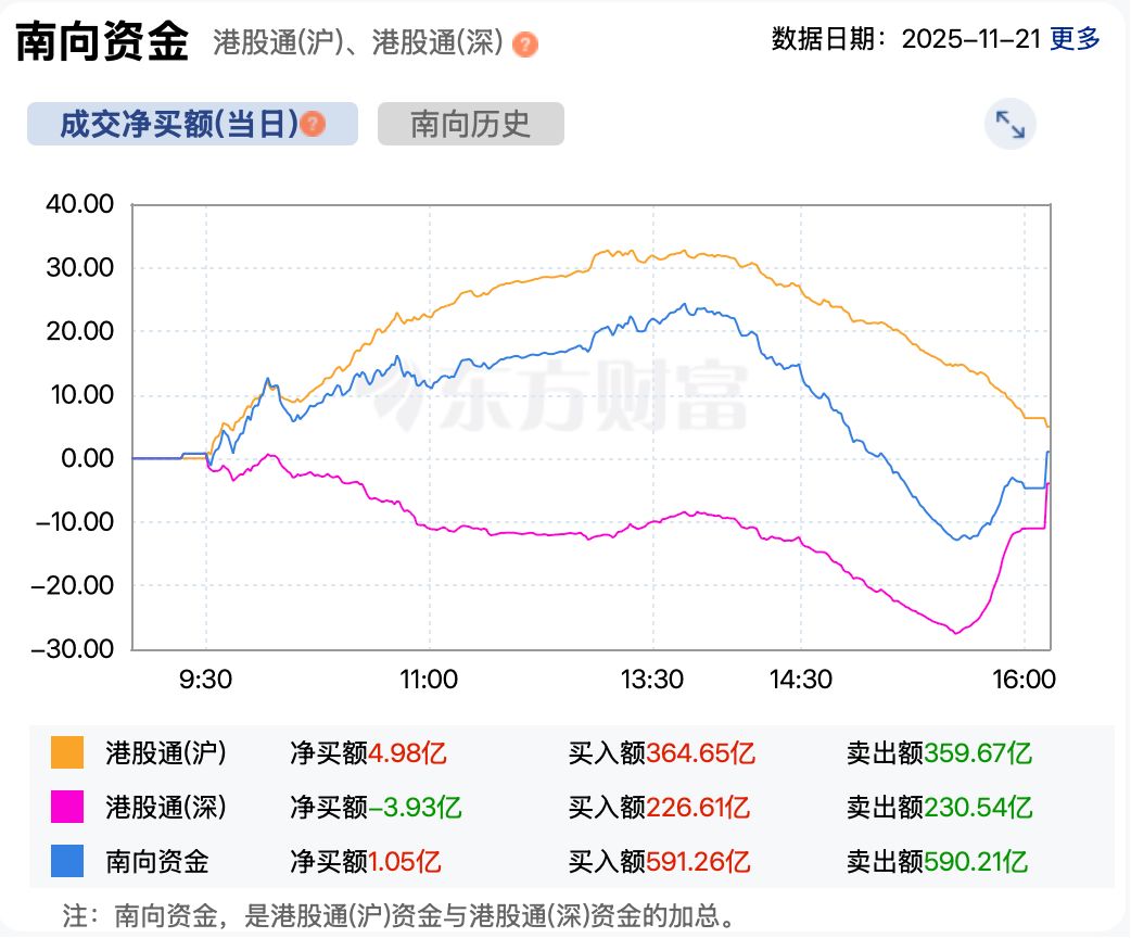 资金方面,截至收盘,南向资金累计净买入港股超1亿港元。