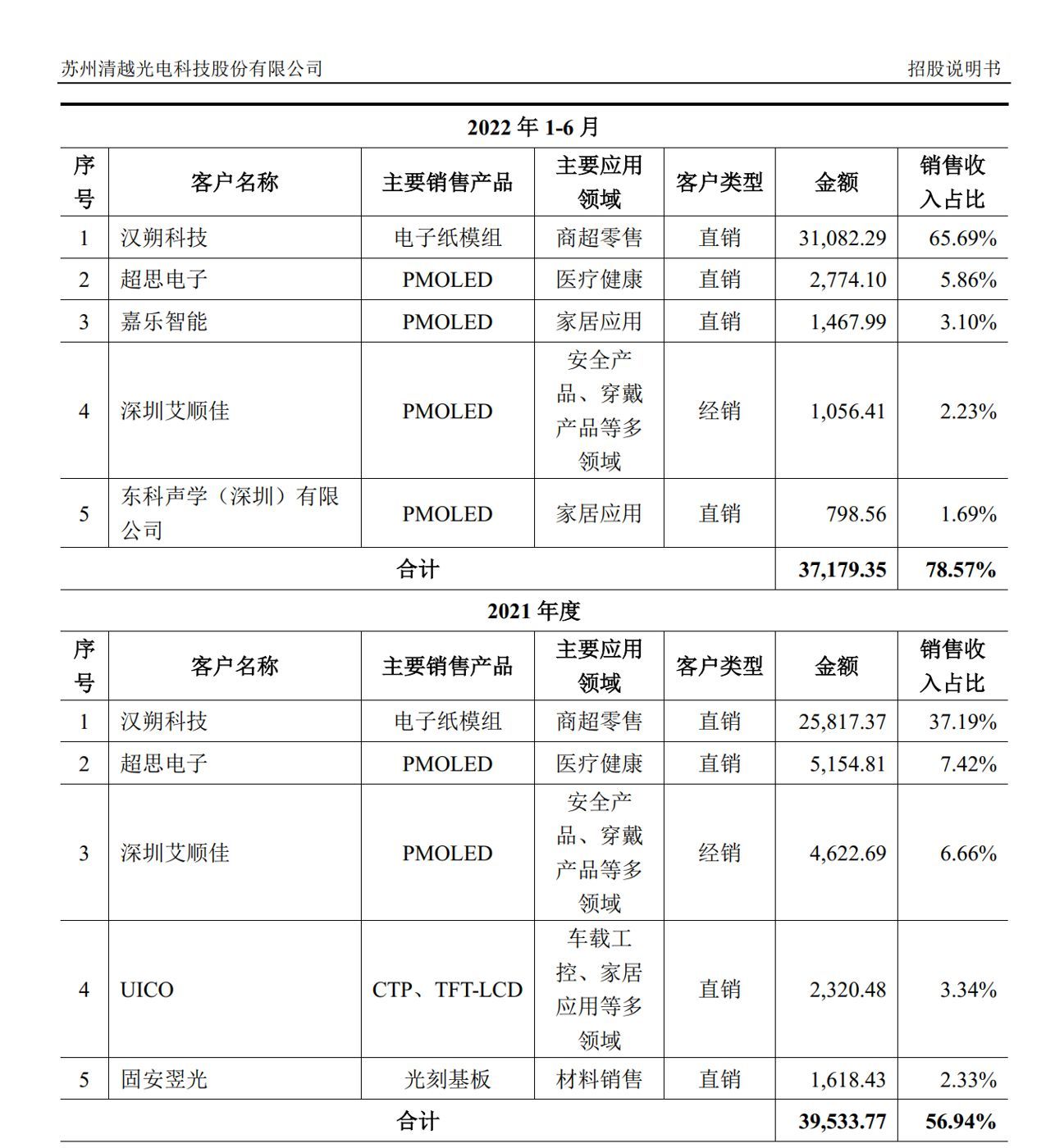 回顾清越科技的IPO之路,其与第一大客户汉朔科技的深度绑定,是支撑其电子纸模组业务估值的重要基石。清越科技向汉朔科技销售的产品就是电子纸模组。