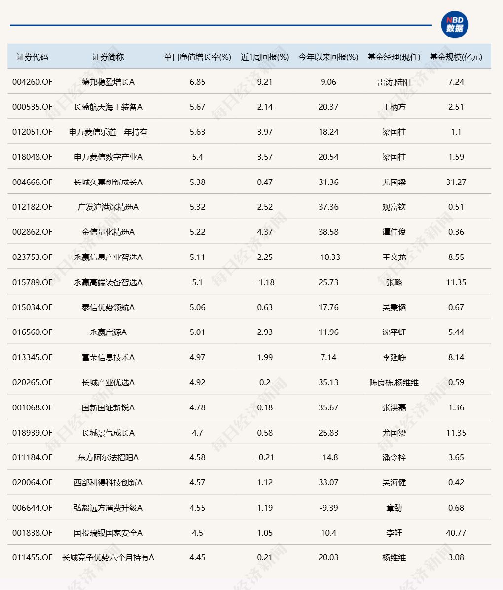 市场探底回升,11只基金单日涨逾5%,但也有产品跌逾5%