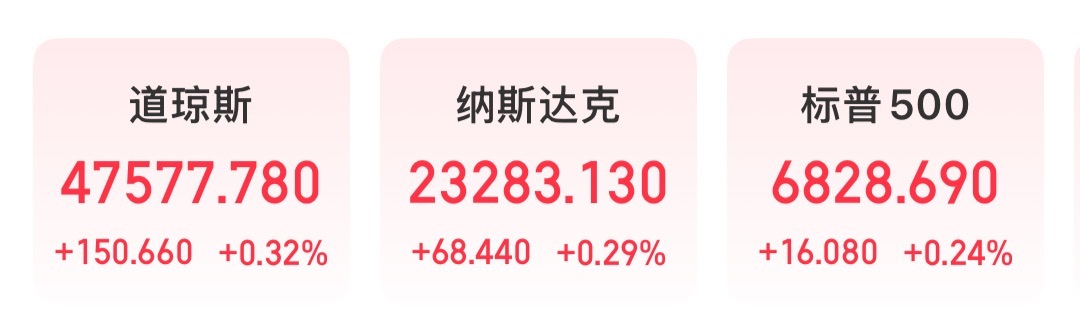 北京时间11月28日晚美股开盘,三大股指集体上涨,截至发稿前,道指上涨0.32%,纳指上涨0.29%,标普500指数上涨0.24%。