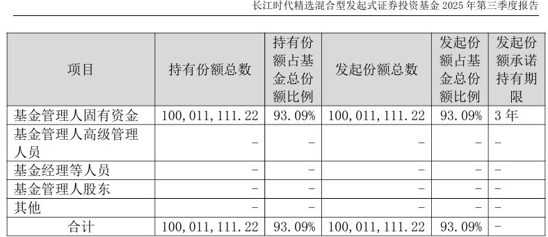 截至今年三季度末,长江证券资管的这部分持有份额没有发生变化,但持有份额的占比进一步攀升到93.09%,相当于这只基金大部分都是管理人在持有。