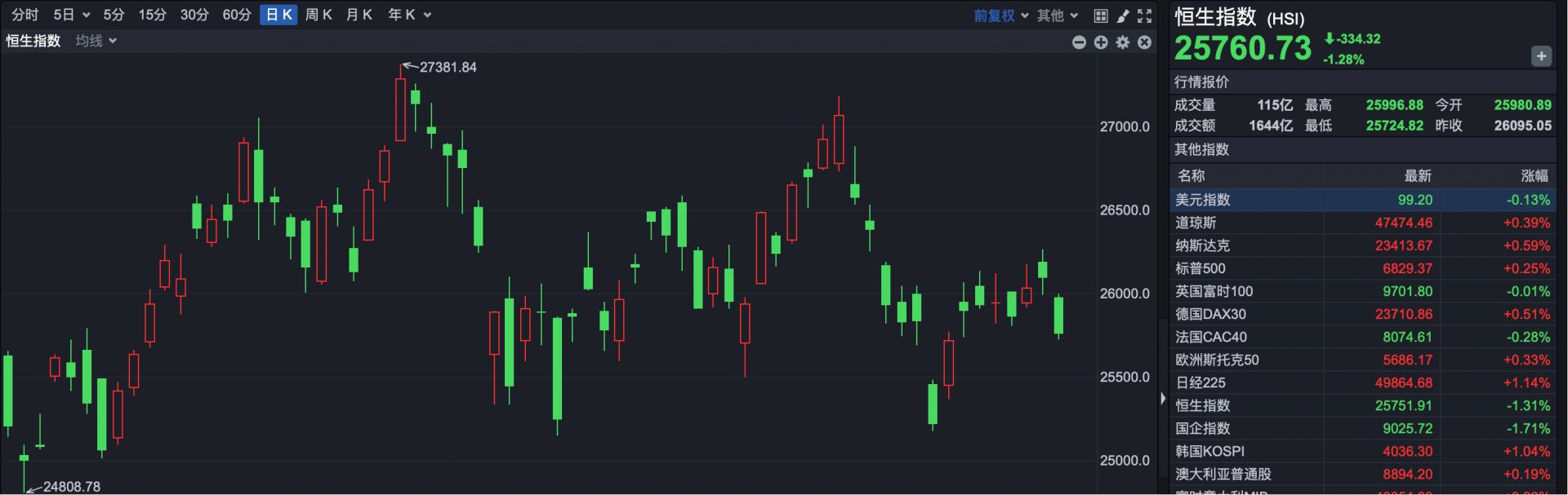 港股速报 | 短期颓势难改 港股表现疲软 恒指26000点再度失守