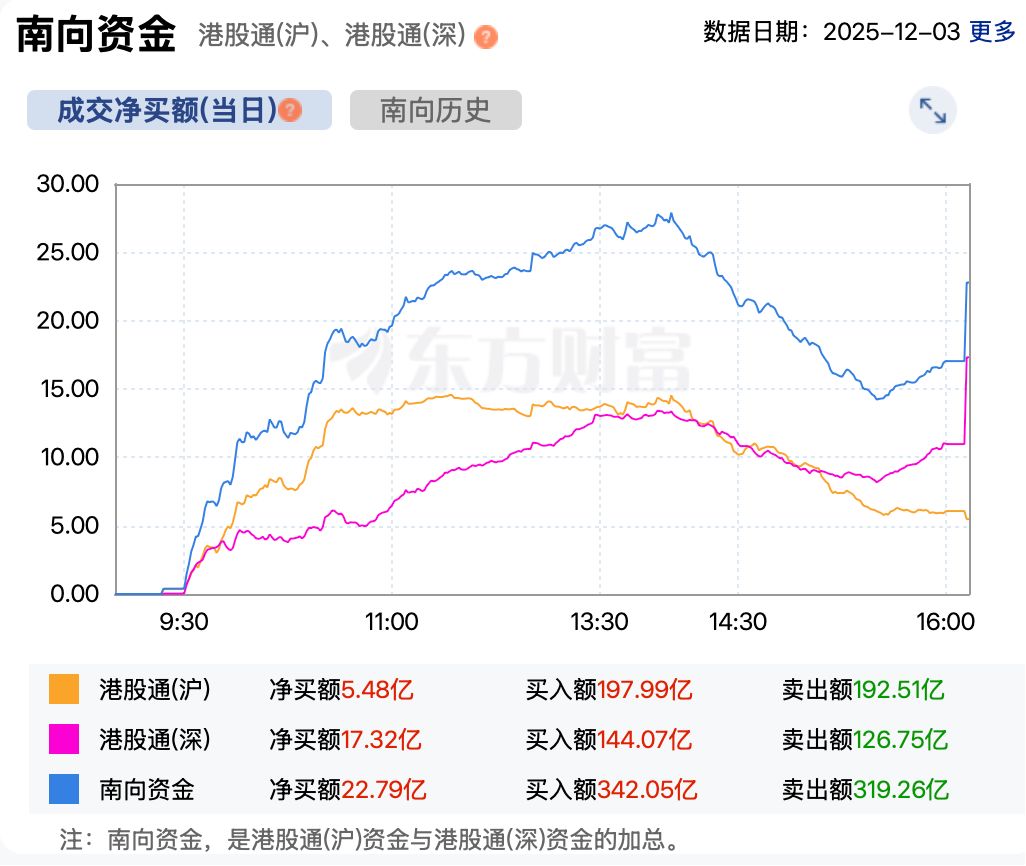 资金方面,截至收盘,南向资金累计净买入港股超22亿港元。