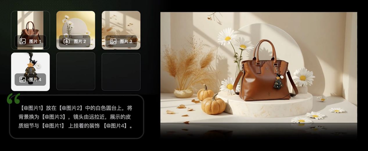 在实际场景落地中,如宣传视频就可以直接上传商品图、场景图等,通过多个主体相互组合快速完成视频生成。