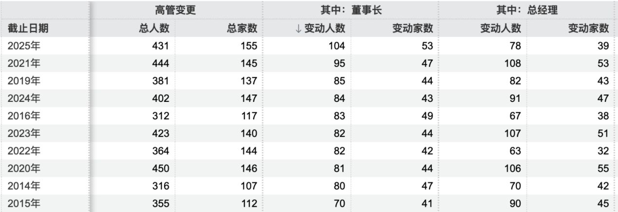根据Wind数据,今年以来公募高管变更人数达到431人,在近10年的变更人数中排在第三。考虑到年底往往是高管变更的高峰期,这个数字很有可能继续增加。