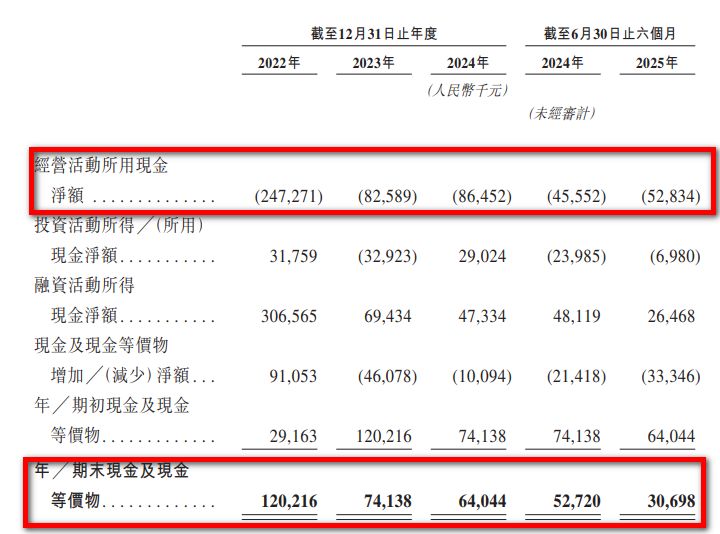此外,相比于会计利润,现金流是更为紧迫的生存威胁。报告期内,主线科技的经营活动产生的现金流持续为负,且现金及现金等价物在报告期末已大幅缩水。